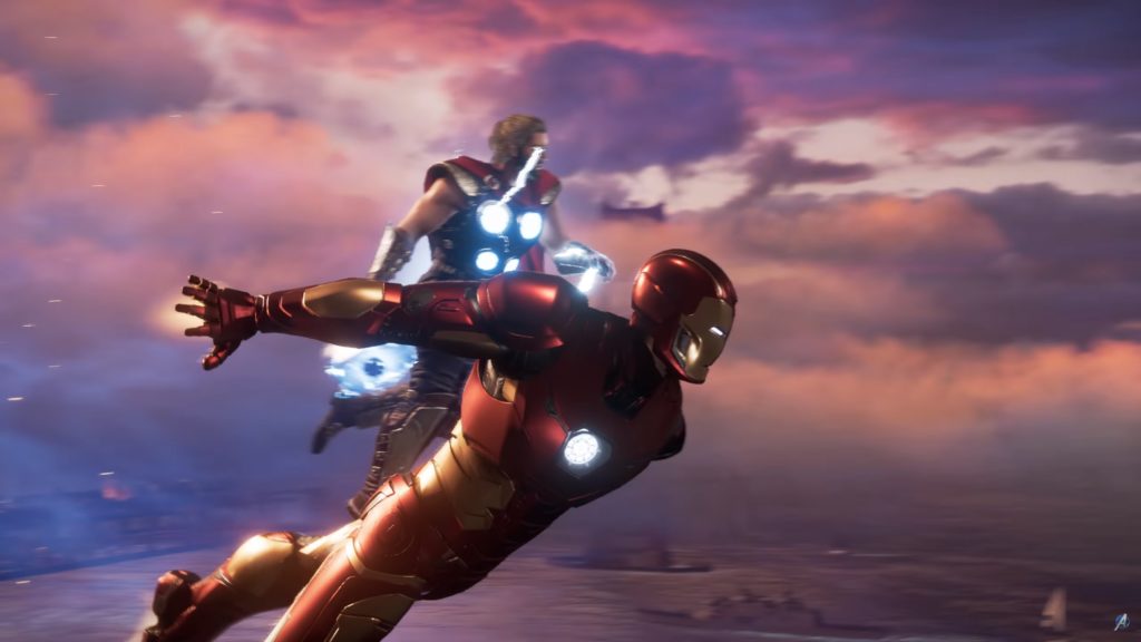 Ce trailer nous offre également un aperçu très intéressant du système d’équipement et de compétences du jeu. On pourra personnaliser nos différents héros pour un gameplay unique ; les opportunités seront particulièrement amusantes en co-op, et on imagine que de nombreux builds de complémentarité sortiront dès la release du jeu. Le « camp de base » sur un helicarrier du S.H.I.E.L.D, d’où on pourra lancer la campagne solo mais également des Warzones en co-op – attention cependant si vous n’avez pas fini l’histoire, car même ce mode multijoueur pourra contenir des spoilers.