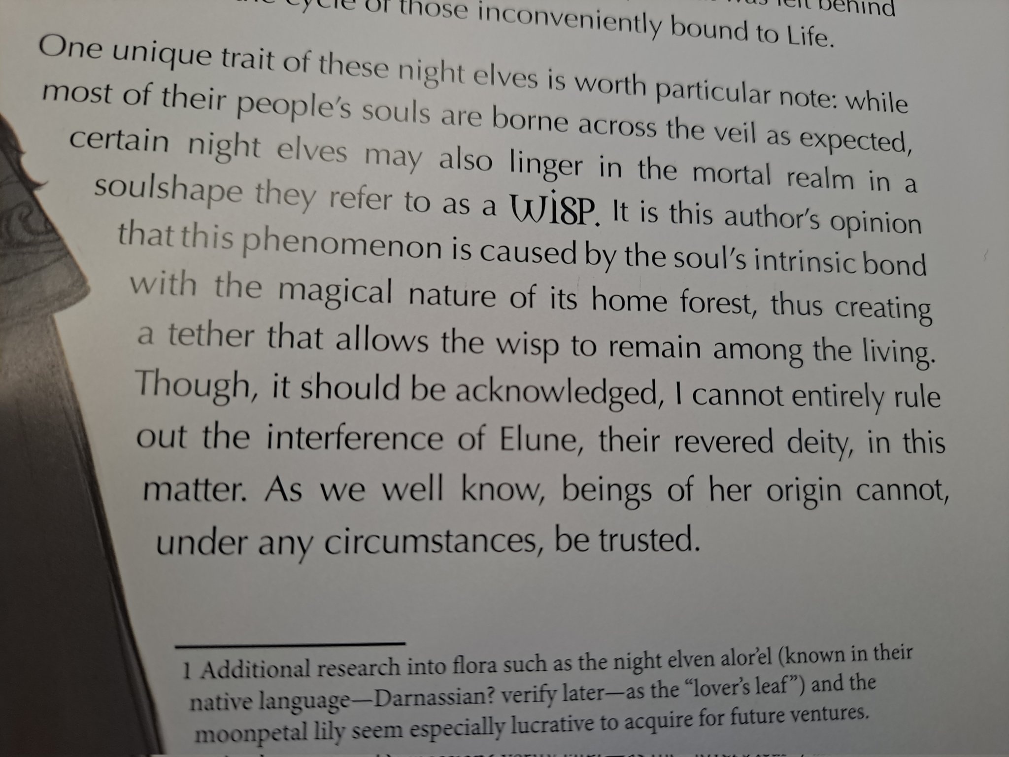 Notre bon Négociant continue son exposé sur les Elfes de la Nuit, dont certains sont capables de franchir le voile séparant le monde des morts de celui des vivants.