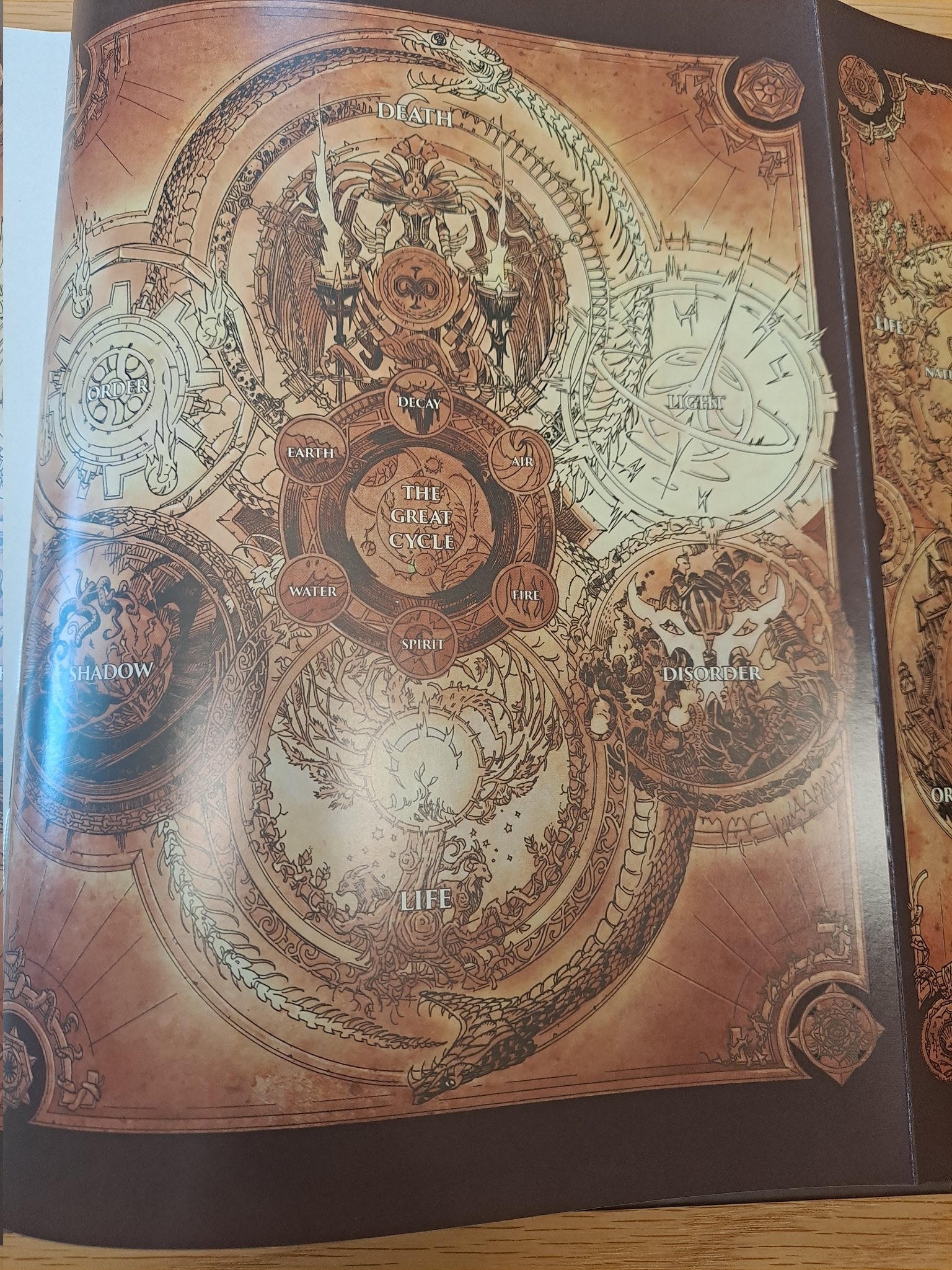 Les livres Chroniques qui retracent l’histoire de l’univers nous ont introduit à la fameuse charte cosmique, laquelle montre toutes les grandes forces majeures de Warcraft, et leur opposition les unes aux autres. Le Négociant nous trace une nouvelle charte, qu’il juge bien évidemment plus complète, mettant en avant la Vie et la Mort.