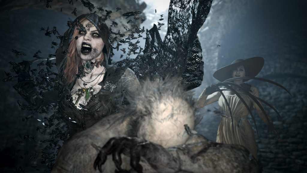 - Lady Dimitrescu dominera ses ennemis dans ce mode dynamique, où elle utilisera sa stature imposante de près de trois mètres de haut pour affronter Lycans et autres créatures ayant la malchance de croiser son chemin. En combat, elle accumulera sa jauge d’Extase en découpant ses adversaires en lambeaux avec ses griffes acérées comme des rasoirs. Cela lui permettra d’effectuer des actions spéciales comme abattre des ennemis avec encore plus de facilité ou invoquer ses filles démoniaques.