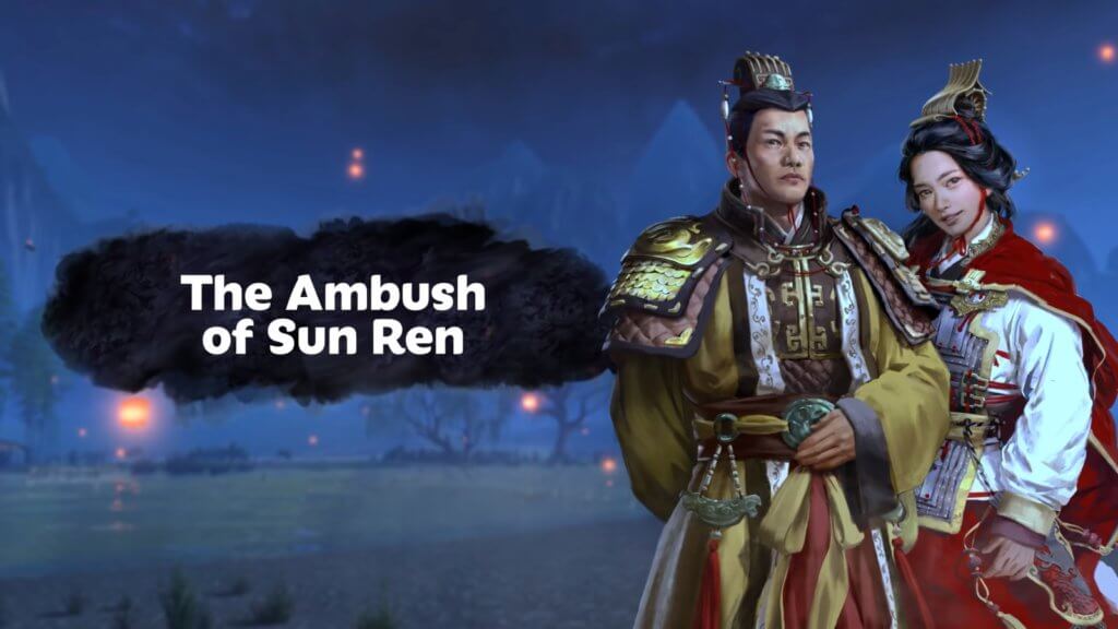 Creative Assembly revient à la charge avait un court let’s play mettant en scène Sun Ren, fille du seigneur de guerre Sun Jian. Ce dernier est sur le point de se faire attaquer par le chancelier Cao Cao, son ancien allié. Malheureusement pour elle, Sun Ren est prise en embuscade sur le chemin, et elle et son armée doivent lutter pour leur survie.