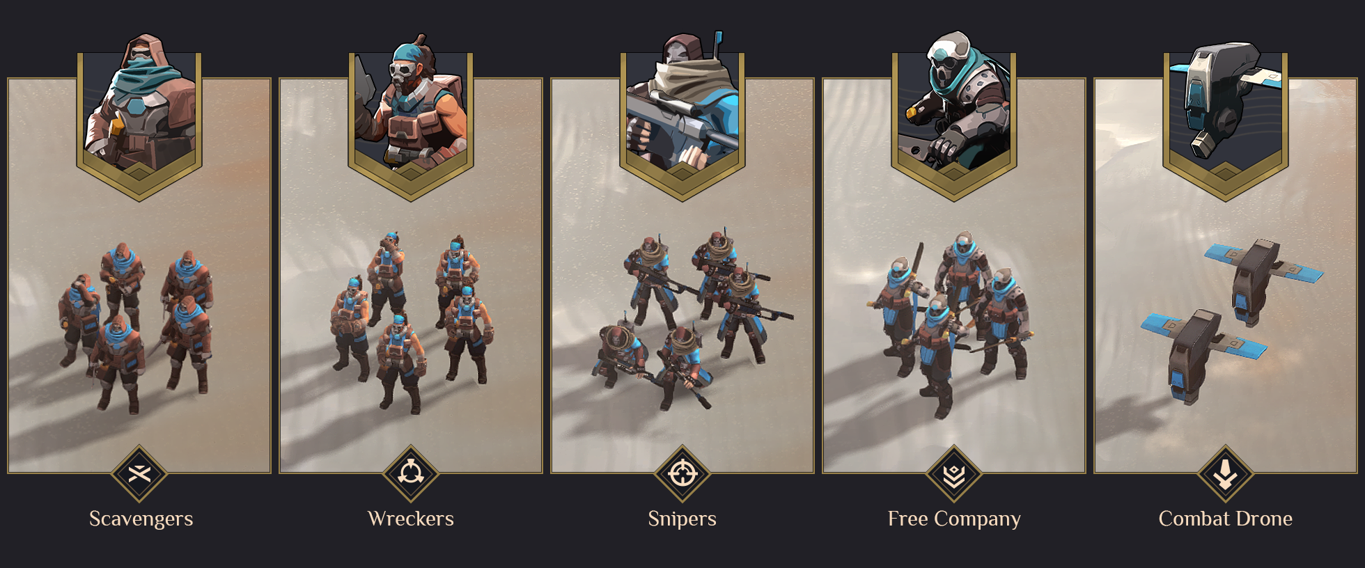 • Les Pillards sont des tueurs opportunistes, qui feront n’importe quoi pour de l’argent facile. Ils préfèrent s’attaquer aux faibles unités affamées avec leurs lames aiguisées. Leur force augmente lorsque les provisions de leur cible diminuent.