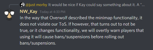 Autre bonne nouvelle : le mod permettant d’afficher une minimap circulaire à l’écran n’est pas contraire aux conditions d’utilisation du jeu ! La clarification a été faite sur les forums officiels et sur Discord – dont vous pouvez retrouver un screenshots plus bas.