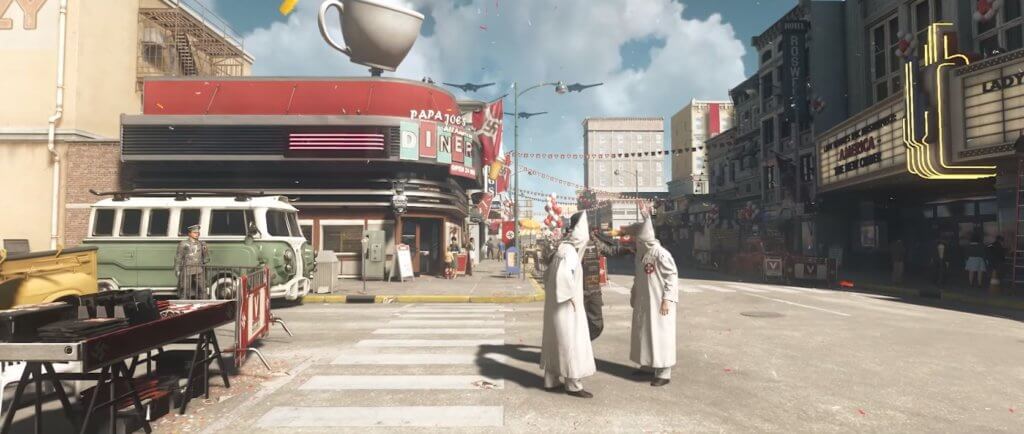 On a aussi un nouvel aperçu de cette Amérique dystopique, et des nombreux ennemis qu’il faudra éliminer avec plus ou moins de discrétion ; Wolfenstein 2 : The New Colossus est prévu pour le 27 octobre prochain.