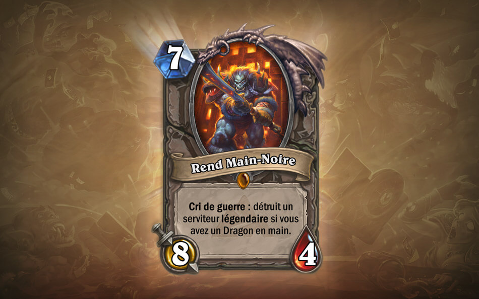 Cela permet aussi de contrer des grosses légendaires de fin de partie tel que ragnaros, dr boum, etc… Même si vous n’avez pas votre chasseur de gros gibier dans la main, sans compter que vous posez une créature pouvant finir l’adversaire grâce à ses dégâts si il ne peut pas la tuer. Il ne faut pas oublier que toutes les légendaires n’ont pas 7 de dégâts ou plus !