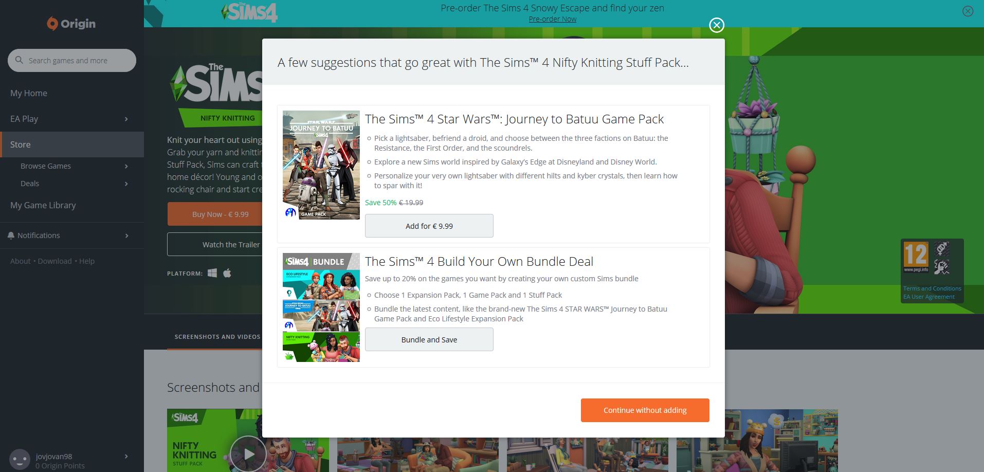 Origin oblige l’achat du dernier pack Star Wars des Sims 4 pour ceux qui veulent acheter un autre contenu