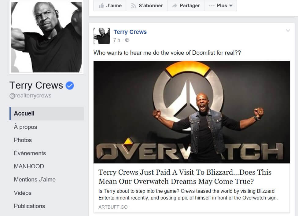 L’acteur Terry Crews n’a jamais caché son amour pour Overwatch, titre auquel il joue souvent ; si souvent que Blizzard l’a d’ailleurs invité à Irvine il y a plusieurs mois, ce qui a donné lieu à de nombreuses rumeurs concernant le doublage de Doomfist. Qui !?