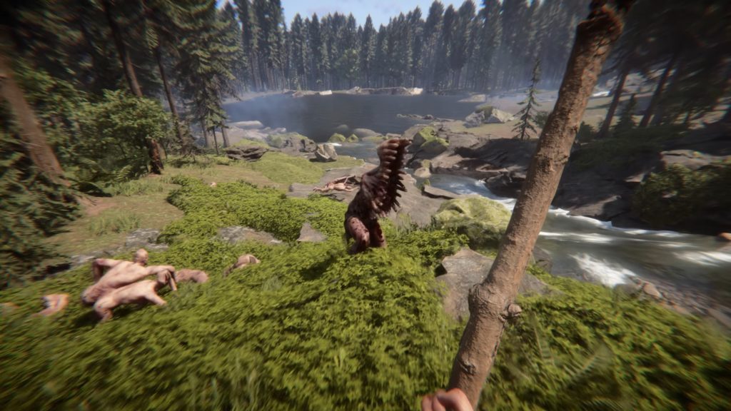 Quant au reste… well, ça s’annonce un peu spécial. Des cannibales humains se mêlent à des bouches géantes sur pattes, le tout semblant parfois franchement hostile, et d’autres fois étrangement amicale. Ces regroupement et le titre du jeu laissent penser que Sons of the Forest nous confrontera peut-être à un culte, que nous aurons l’occasion d’infiltrer.