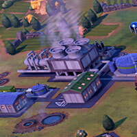 - Centrale électrique : ce bâtiment du Complexe industriel sera divisé en trois étapes, correspondant aux ressources utilisées en fonction de l’Ère : charbon, pétrole et uranium. La centrale consommera des ressources à chaque tour pour produire de l’énergie. Pas de screenshot disponible.
