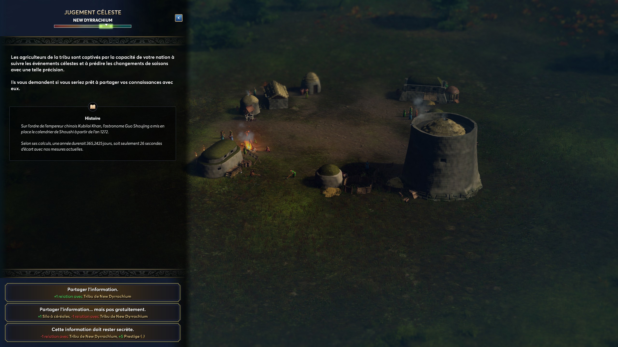 La notion de choix se poursuit avec les événements aléatoires, qui dépendant souvent des tribus (genre de cités-états indépendantes) parsemées aux alentours. Des choix multiples avec des conséquences immédiates auront des ramifications plus tard dans la partie, avec des incidences diplomatiques et/ou technologiques à ne pas négliger. Sacrifier une unité de Lanciers pour obtenir 20 parfums et de la réputation avec un voisin peut sembler excessif, mais c’est un move qui sera bénéfique sur le long terme… n’est-ce pas ? Mes essais avec différentes civilisations m’ont permis d’essayer différentes approches, certaines plus isolationnistes que d’autres.