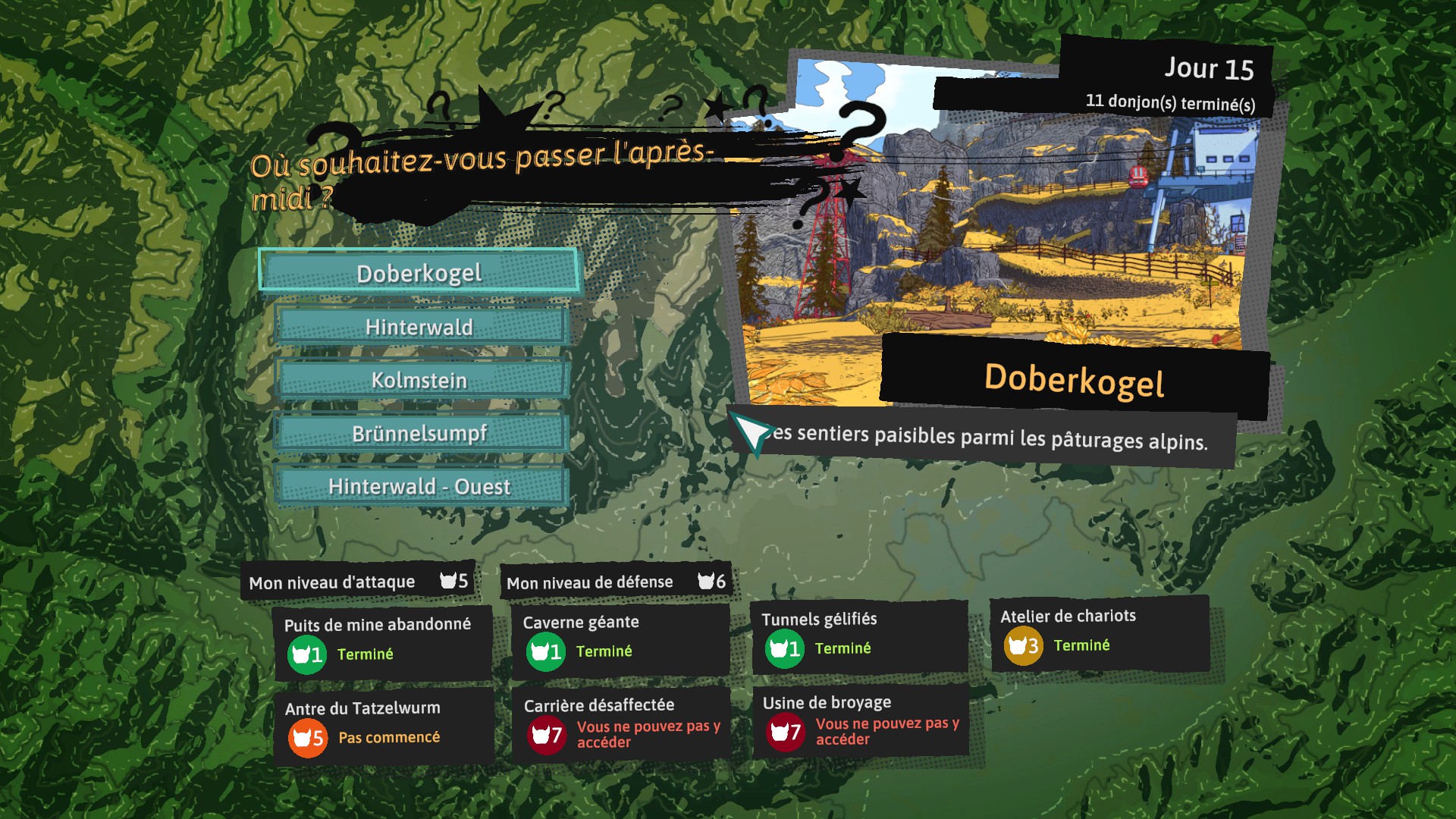 Mise à part des tournants majeurs dans le scénario du jeu, vos journées ressembleront à cela, à quelques petits détails près. Les options de mouvement peuvent paraître limitées au début, mais il y a tellement de choses à faire et tellement de personnes à rencontrer à Hinterberg qu’il vous faut apprendre à prioriser.