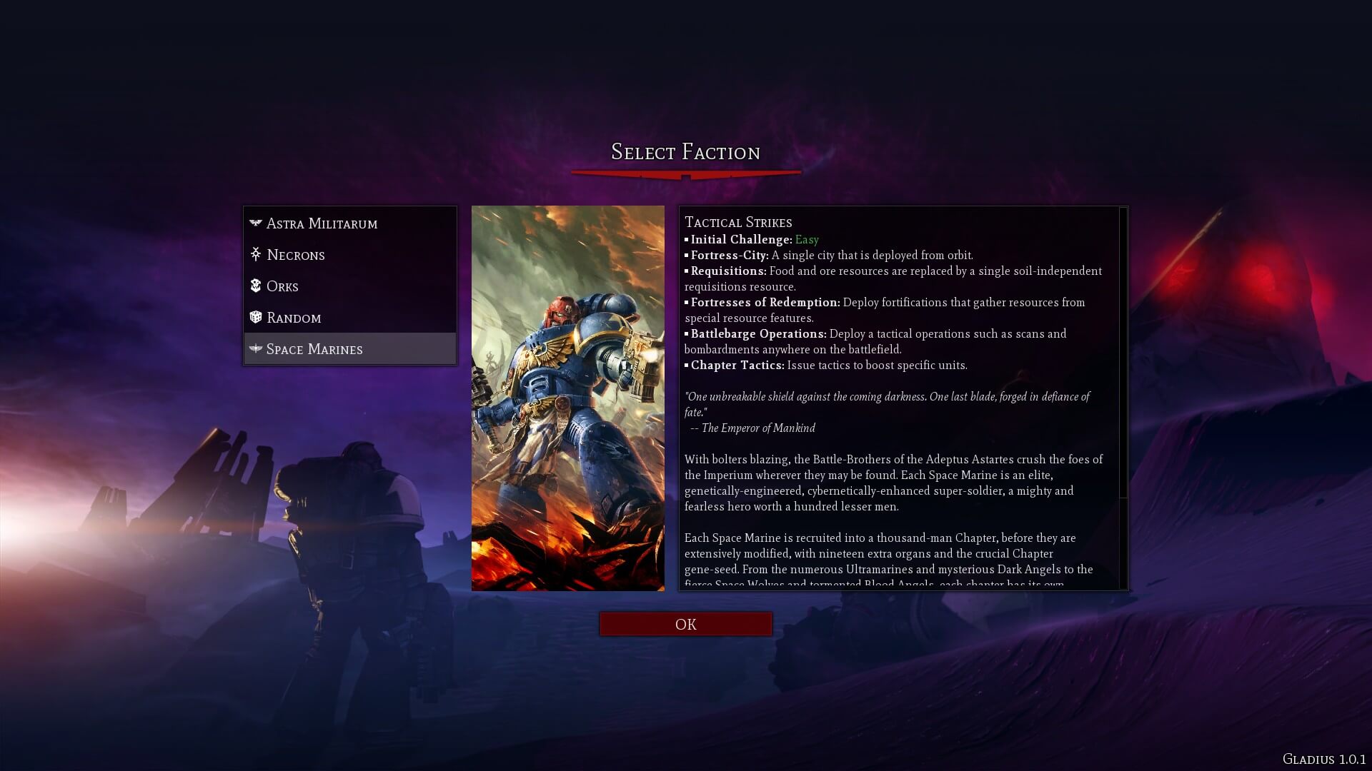 En jouant, j’ai vraiment apprécié Gladius – Relics of War, et le travail qui a été fait dessus, mais il manquait un petit quelque chose, cette saveur discrète qui donne tout son goût à une réussite. Et en fait, c’est plein de petites choses qui manquent. Le créateur d’armée, certes, et aussi des icônes stylées, mais on regrette aussi l’absence d’histoire. A l’instar de Dawn of War : Dark Crusade, le jeu de Proxy Games se passe sur une planète précise, et a donc un cadre donné ; il aurait été possible (et appréciable) d’avoir un semblant de cadre scénaristique, avec, pourquoi pas, des quêtes personnalisées plus travaillées que les objectifs de faction assez vagues disponibles actuellement.
