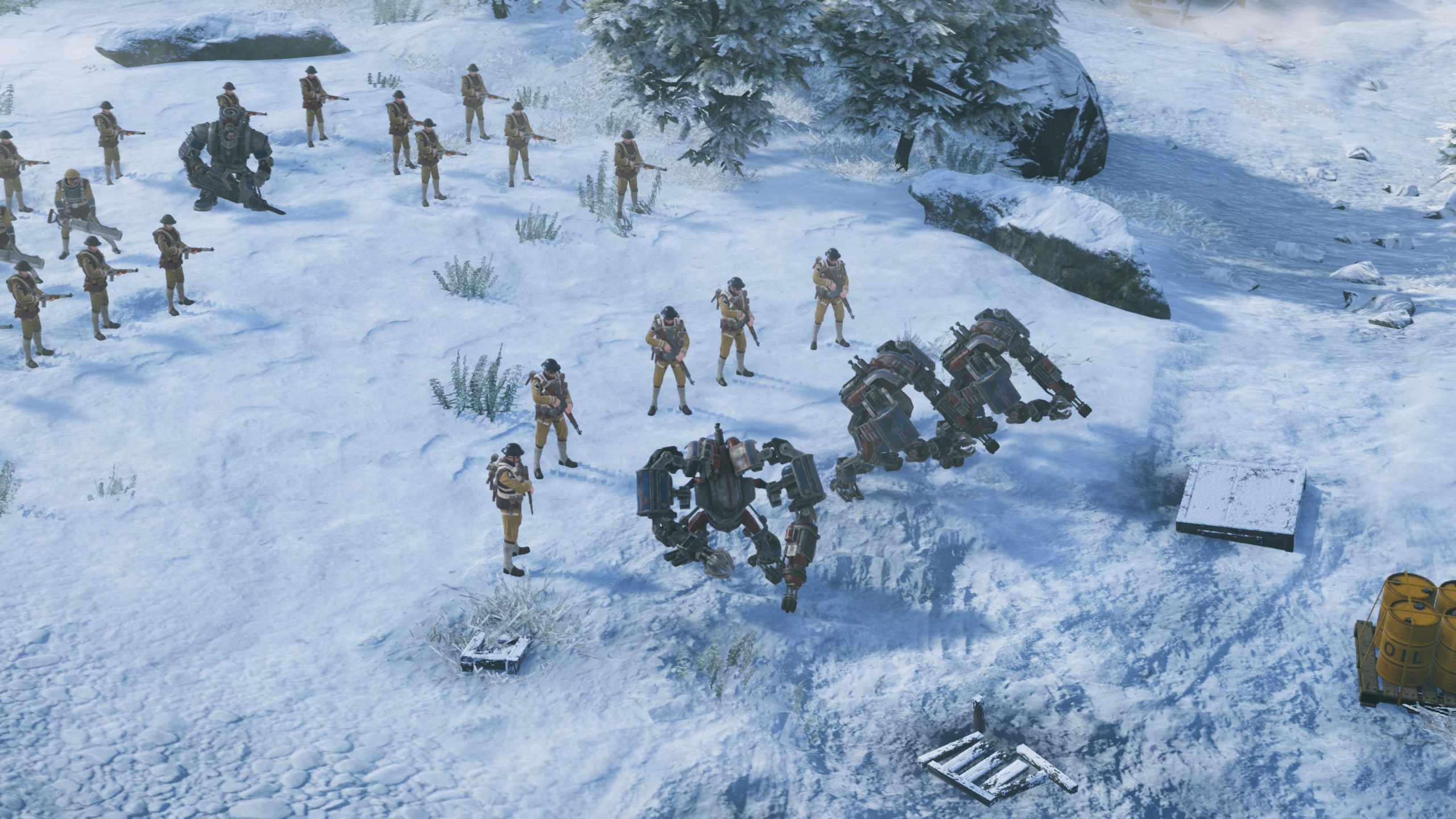 La campagne de ce DLC nous fait commencer en Alaska, la neige locale n’étant donc pas trop dépaysante par rapport aux paysages de Iron Harvest 1920+ ; mais rapidement, direction l’Arabie et ses importantes réserves de pétrole !