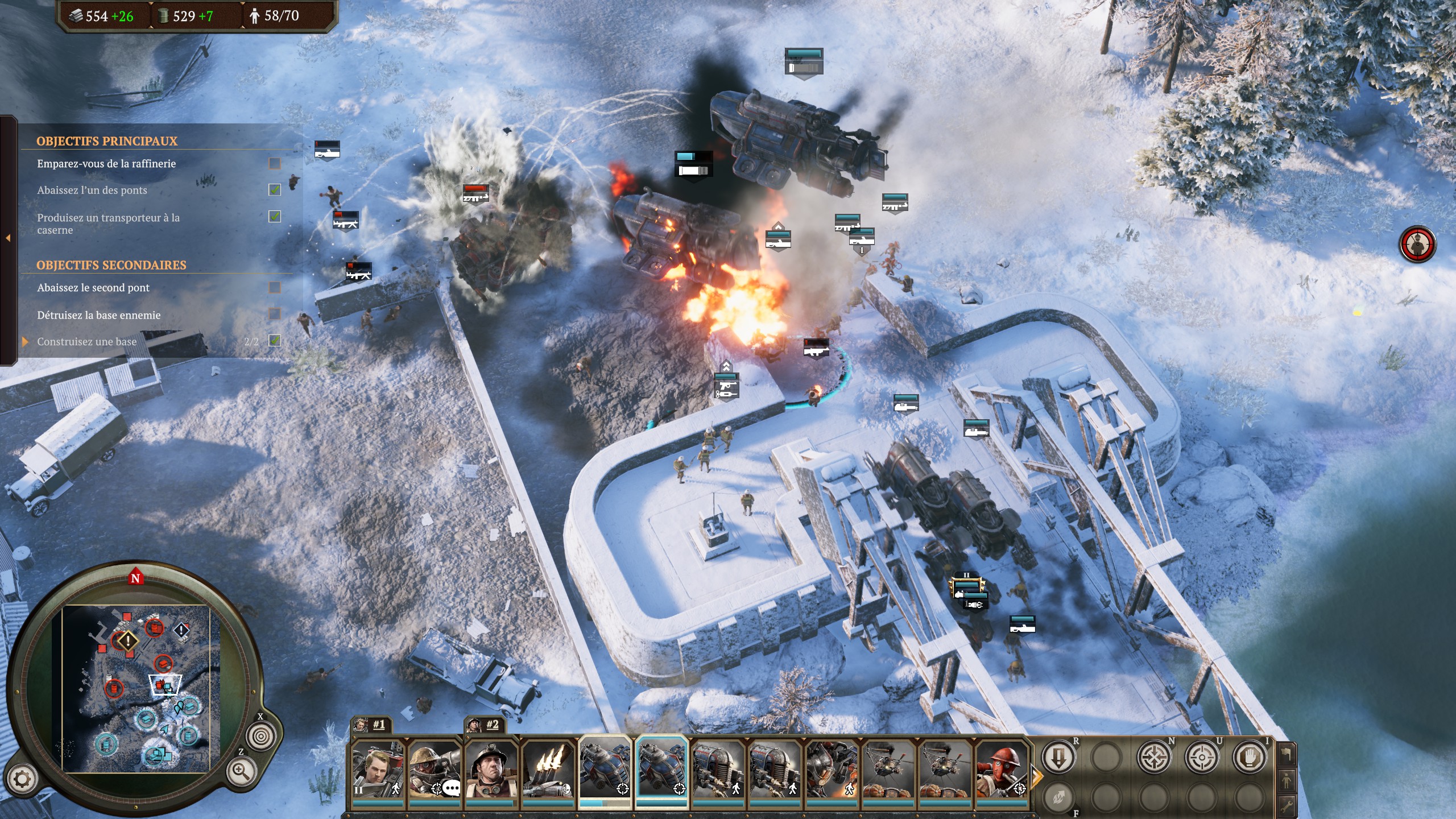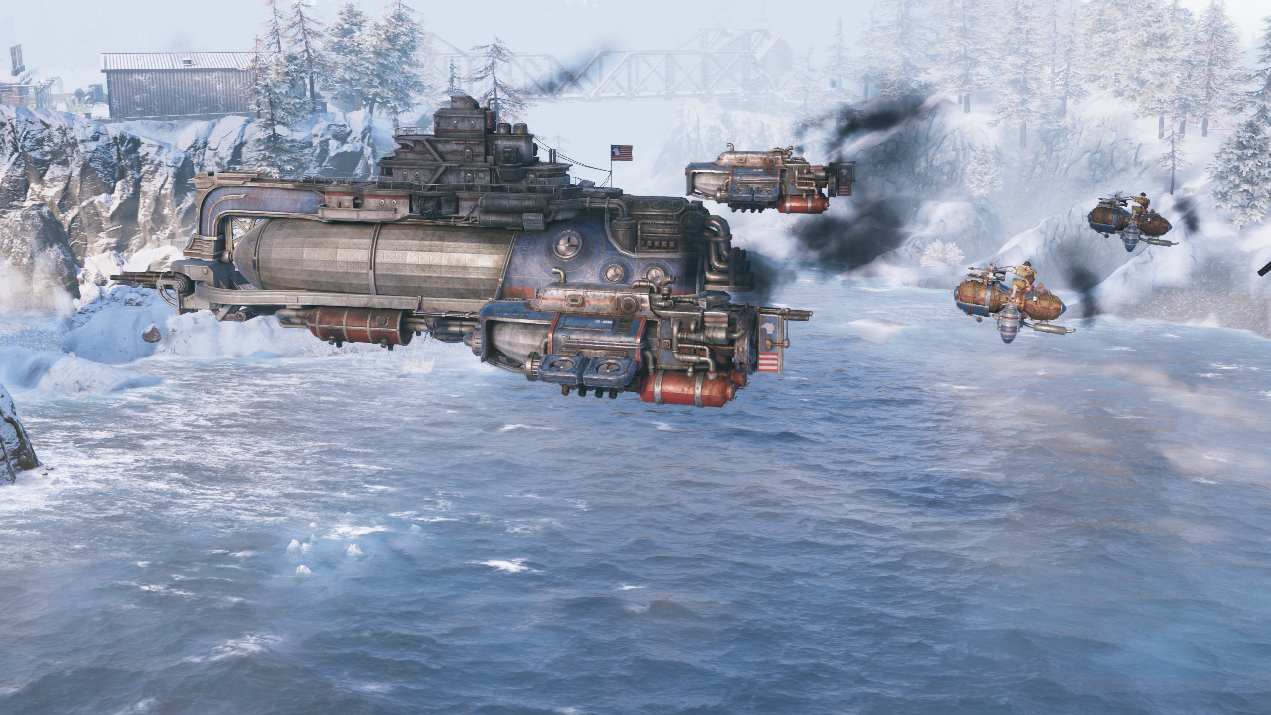 Dès les premières missions du jeu, l’Ursonie contre-attaque en Alaska avec ses imposantes machines volantes, et il y en pour tous les goûts : du vaisseau-amiral cracheur de napalm aux éclaireurs rapides, en passant par des bombardiers imposants. Le fait de pouvoir parcourir des distances en ligne droite offre une toute nouvelle perspective stratégique, mêlant unités terrestres et aériennes dans des assauts réfléchis.