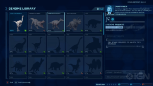 Dans ce parc, pas de rollercoasters ou de train fantôme mais des attractions vieilles de plusieurs millions d’années, et assez bien équipées par Mère Nature pour vous ouvrir en deux en un instant. Le frisson, c’est vendeur paraît-il, mais amener un dinosaure dans un enclos est une tâche ô combien compliquée : il faut d’abord construire un enclos et tous les bâtiments nécessaires ce qui coûte (trop) cher, il faut ensuite envoyer des expéditions trouver des fossiles puis synthétiser le génome de la bête. Par ailleurs, il vous faudra un génome synthétisé à plus de 50% pour pouvoir faire incuber cet ancêtre des oiseaux mais plus le pourcentage du génome est élevé, plus il sera viable et attrayant pour le public. Tout ceci coûte beaucoup d’argent mais permet de vous en faire pas mal également, d’autant qu’il y a une cinquantaine de ces bêtes a écailles ; de plus, vous pourrez modifier leur génome pour les faire vivre plus longtemps ou être plus résistants aux maladies. La génétique, c’est chic !
