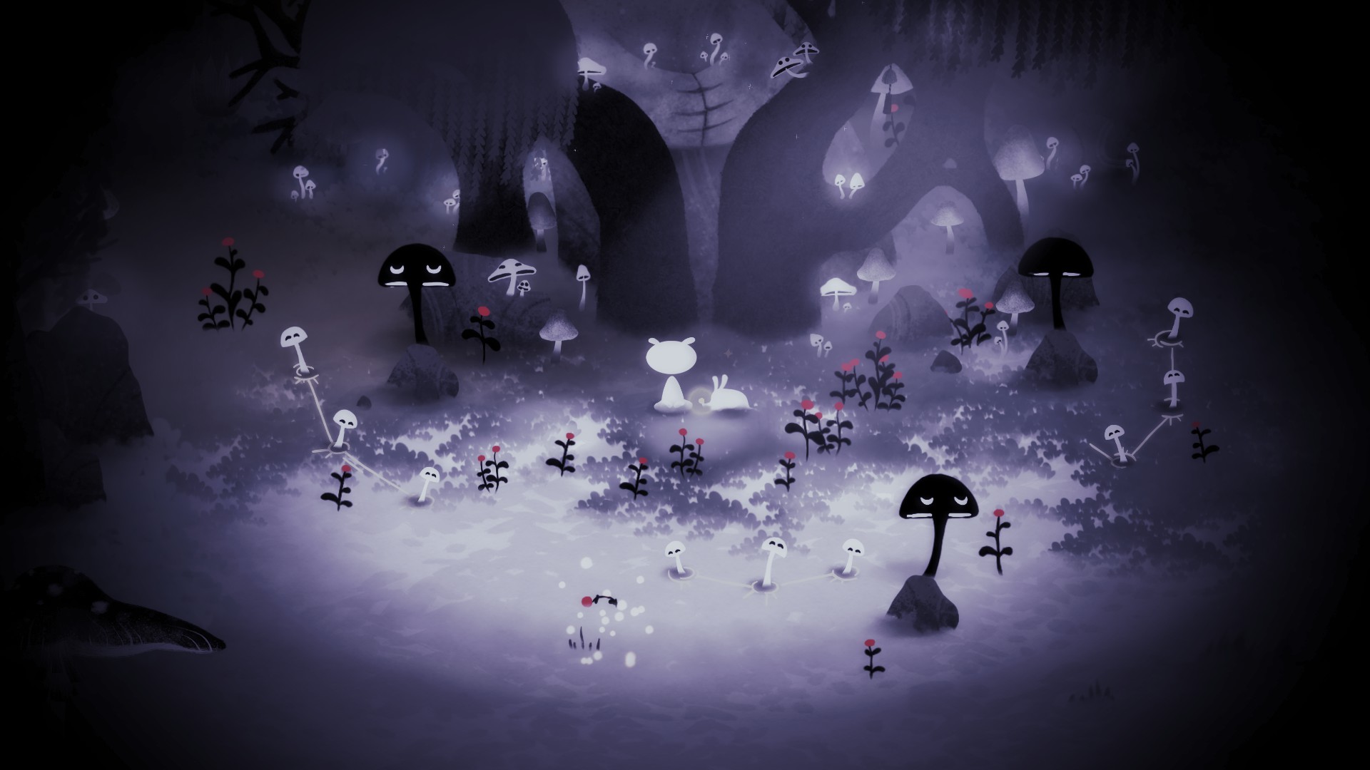 Fort heureusement, les rencontres sont également bien heureuses dans cette forêt enneigée ! Différents animaux et êtres en tous genres vivent à l’abri de cette jolie canopée ; ceux-ci nous permettent d’avancer dans notre aventure, mais développent également le caractère de notre personnage. Au fil des rencontres, celui-ci devient un genre de gardien de la forêt, mais je vous laisse découvrir ça par vous-même…