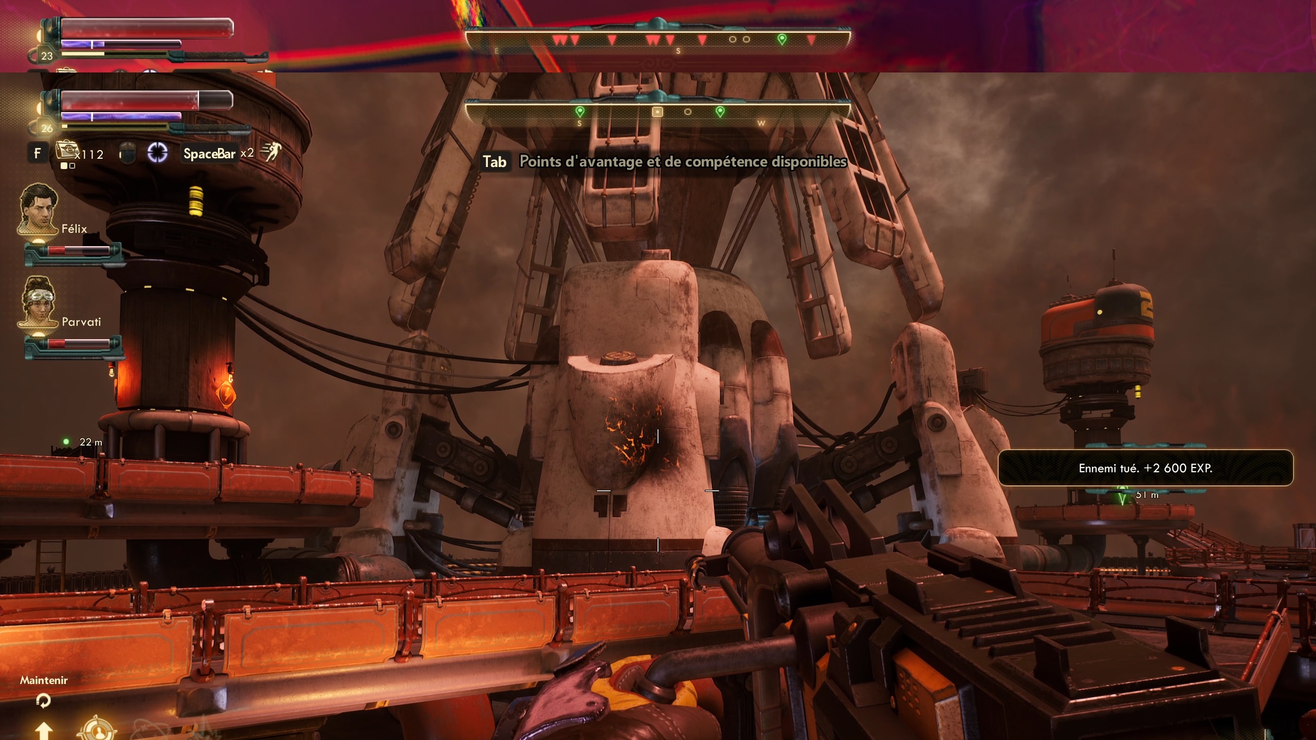 L’architecture est aussi un peu différente de ce qu’on a pu voir sur les autres planètes, avec une certaine élégance moins technologique. Malgré tout, on aurait apprécié que Obsidian aille plus loin sur ce concept, pour nous dépayser un peu plus. Mais l’ensemble est quand même cool, surtout avec le bouclier atmosphérique stylisé, qui fait peser un sentiment d’écrasement bienvenu.