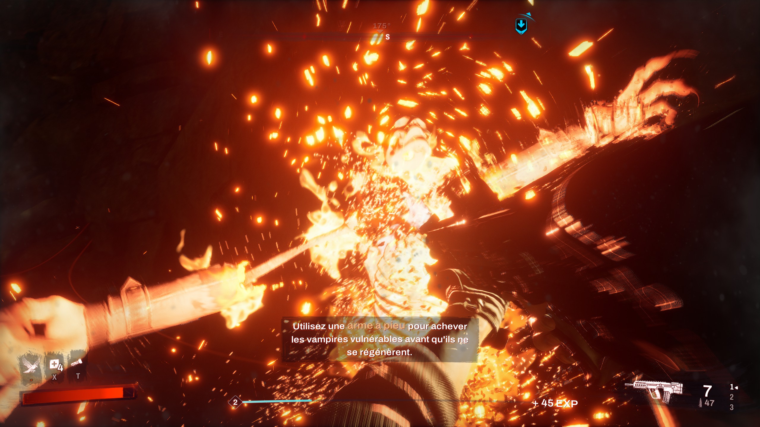 Malgré tout, l’open world de la ville offre de nombreuses activités. Vous trouverez dans chaque quartier un refuge à réalimenter en électricité, lequel devra ensuite être sécurisé via des missions simples, mais efficaces. Des collectibles vous permettront également d’améliorer vos statistiques, ou encore d’en savoir plus sur les événements qui ont transformé la ville en cauchemar aux longues canines. Perclus de dangers, mais recelant de belles récompenses, les nids de vampires offriront un interlude qui n’est pas de tout repos, mais permettra de se frotter à de puissants ennemis dans un cadre qui change de la routine des missions.