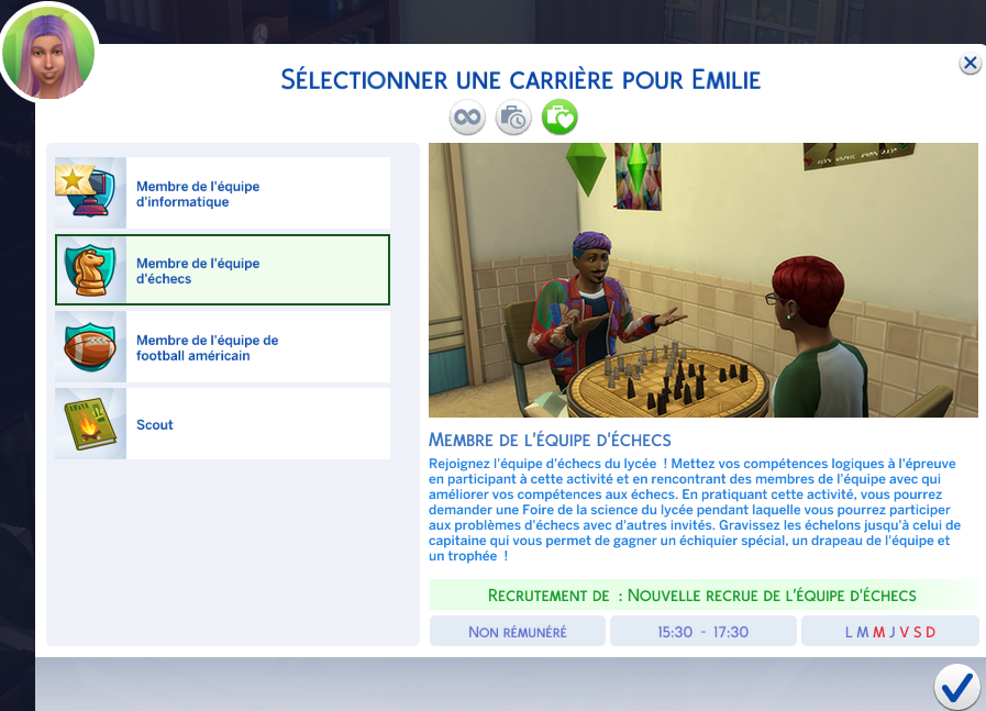 En accompagnant notre ado au lycée, une liste d’objectifs à accomplir apparaît : il nous faudra assister aux différents cours (ou pas eheh) afin de faire progresser notre sim jusqu’à l’obtention de son diplôme ! Chaque vendredi ont lieu les examens, donc révisez bien à l’aide des bibliothèques ou directement aux cours du soir au lycée. Le samedi, c’est bal de promo avec notamment l’élection du roi ou de la reine du bal, mais aussi du bouffon. Un peu de détente après cette semaine de stress…