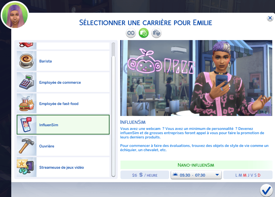 Ces activités se déroulent comme un emploi, votre sim quitte le terrain où il se trouve pour deux heures et revient à son domicile. Il n’est cependant pas possible de le suivre lors de ces activités…