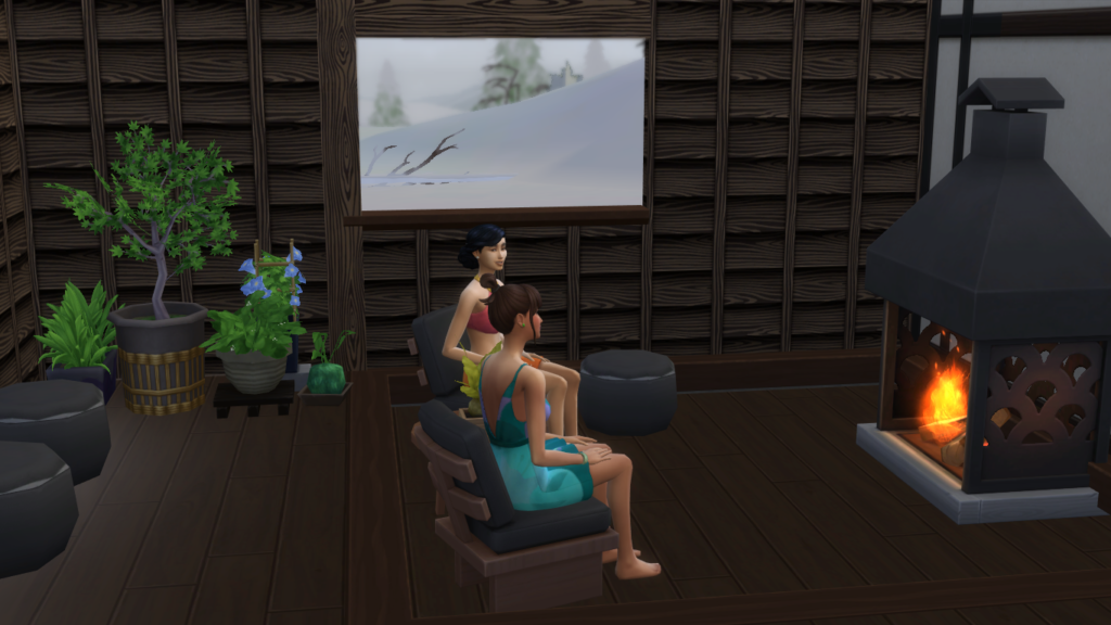 Si, au contraire, votre Sim est plutôt branché tourisme et détente, emmenez le faire une des nombreuses randonnées, puis il pourra aller se détendre – et même faire crac-crac – dans les sources chaudes de l’onsen.. C’est dommage que les lieux de randonnée ne soient pas accessibles, comme le Temple, et que l’on voit simplement les Sims marcher.