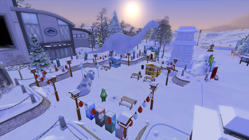 Le mode construction est très fidèle à l’architecture japonaise, avec ses tatamis et paravents shojis, et c’est un plaisir pour les yeux. Il plaira à coup sur aux fans de construction. Le mode achat quant à lui est assez riche avec 135 objets, mais surtout de la décoration et peu de gameplay, hormis les skis et snowboards, dont certains à déverrouiller.
