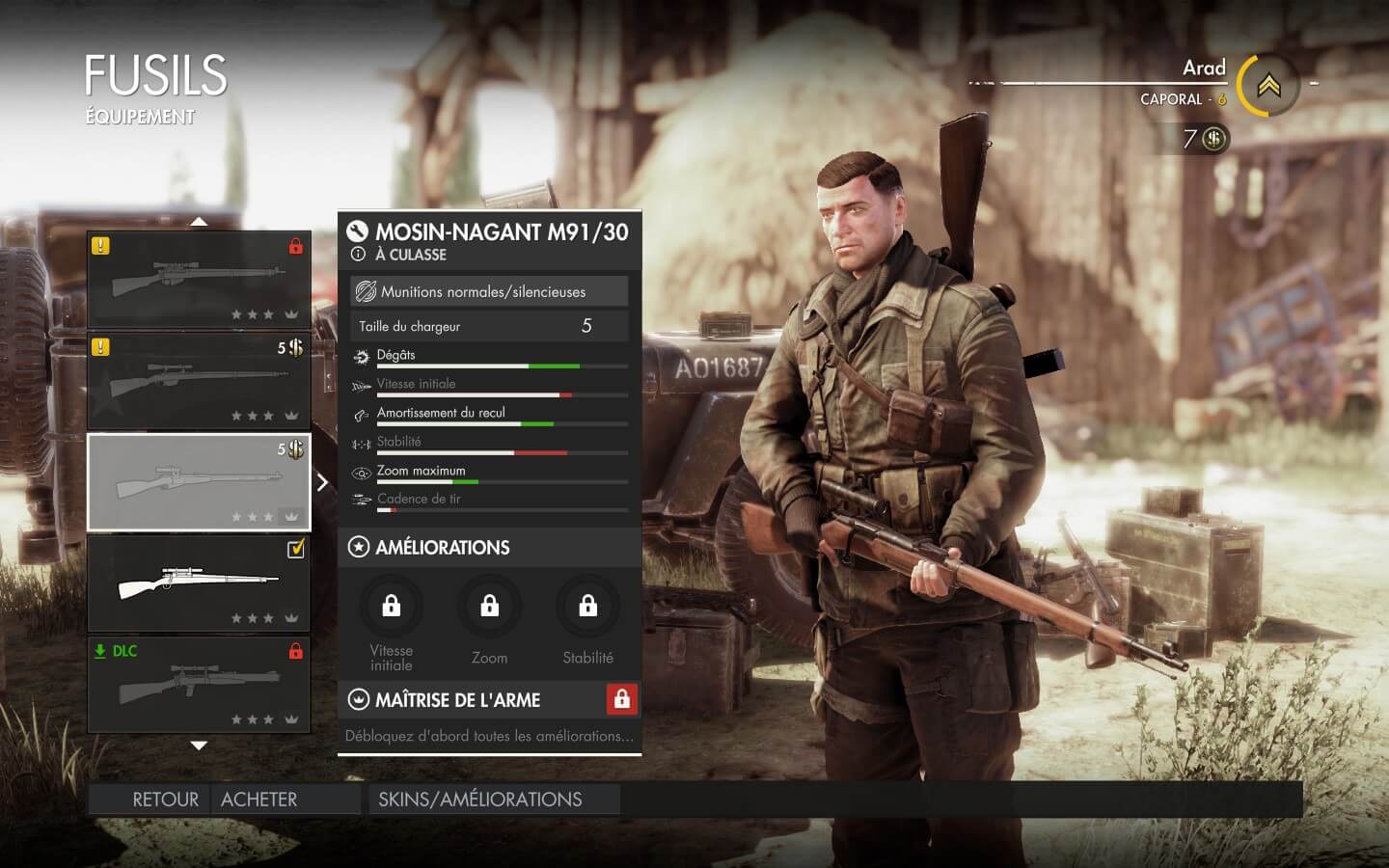 Vous pouvez acheter des armes différentes dans le menu « Equipement de joueur » au niveau de l’écran d’accueil. Un très bon point, changer d’arme ne change que votre façon de jouer mais ne vous rends pas surpuissant. Elles sont toutes au même prix et seul votre gameplay en sera changé. C’est valable pour les trois types d’armes principaux: fusil, arme secondaire, pistolet.