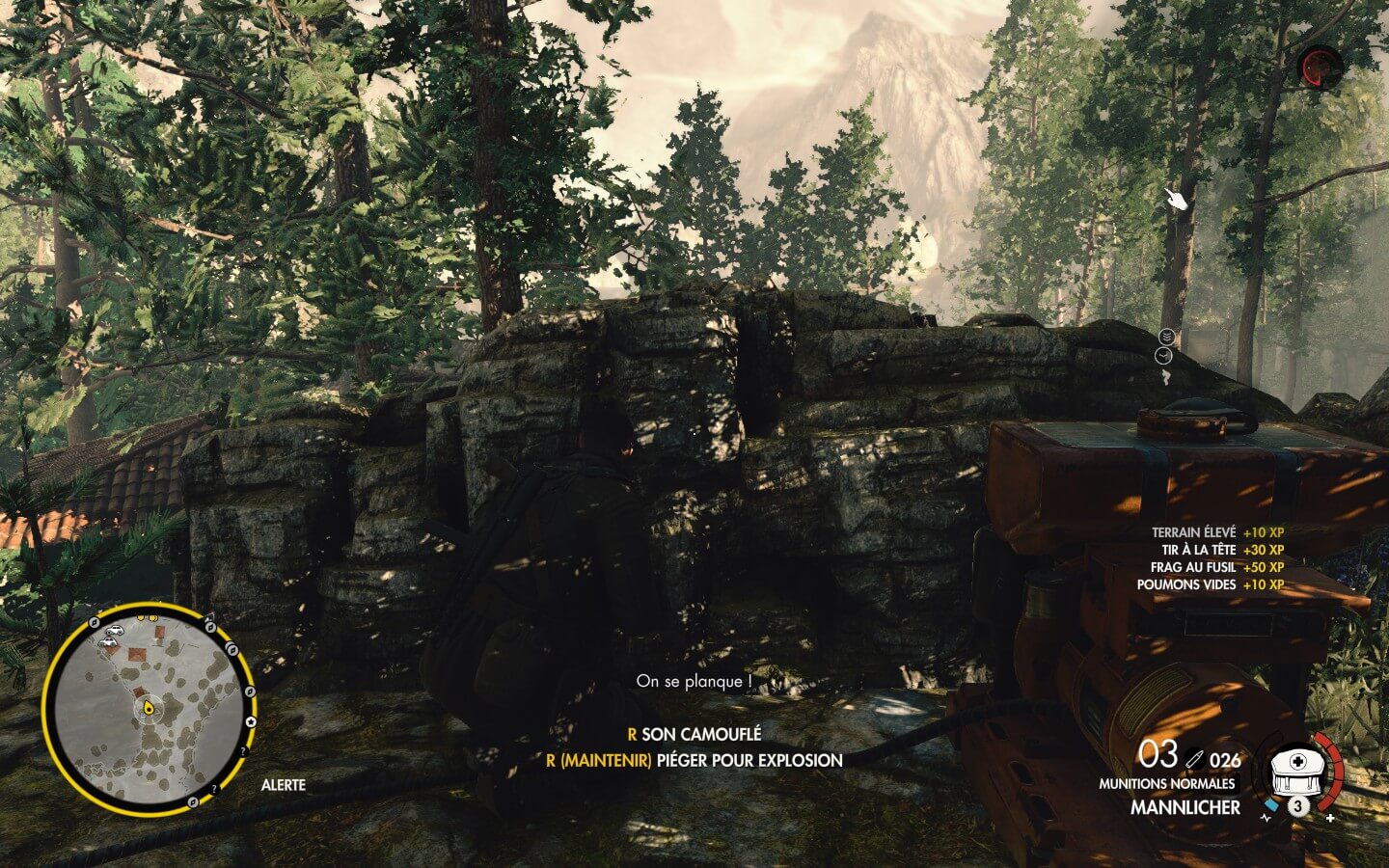 Les maps de mission sont assez grandes ce qui permet de varier les approches, bien que certains points soient indispensables comme les points surélevés qui permettent une excellente vue globale de la zone proche, ce qui permet de préparer son offensive, et également de commencer à nettoyer la zone. Tous les points surélevés sont de très bons nids de tir mais attention à ne pas se faire coincer, il faudra aussi avoir  » des itinéraires de sortie  » afin de pouvoir s’enfuir sans y laisser sa peau.