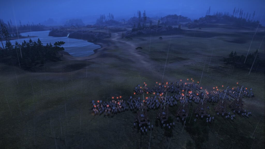 Quid des graphismes ? Nous avions noté il y a plusieurs mois la magnifique map de campagne, qui reflète, encore une fois, l’aspect poétique de cette période historique. Forêts profondes, chaînes de montagnes vertigineuses, fleuves sans fin… les yeux se perdent dans ces paysages féeriques. Les champs de bataille recèlent eux aussi de nombreux détails : une attaque au printemps, par exemple, fera apparaître des paysans qui laboureront tranquillement la tête, et ce au mépris de cavaliers chargeant autour d’eux.