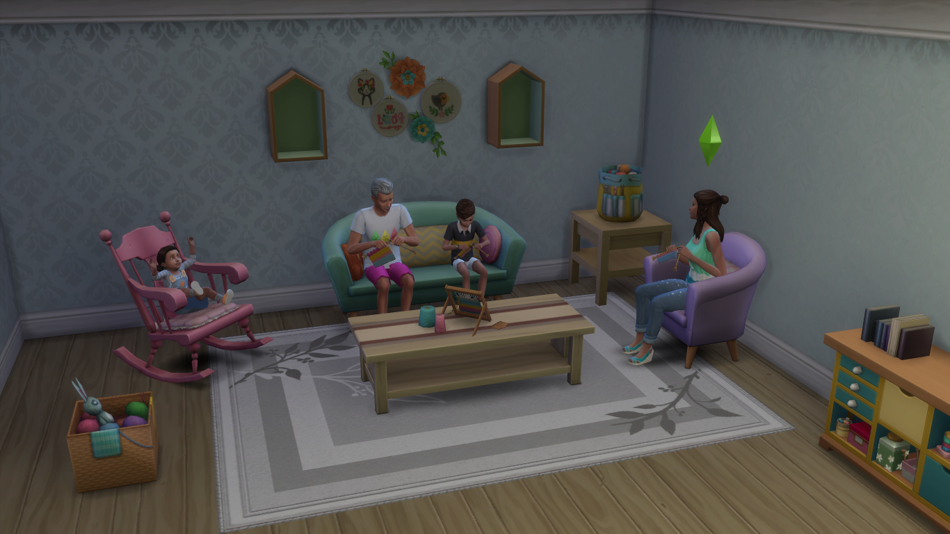 Quelle déception ! Le mode construction ne contient qu’une nouvelle porte assez similaire à celles du jeu de base, et une pièce prédéfinie pour tricoter. Quant au mode achat, il ne contient qu’une petite vingtaine de nouveaux objets, dont beaucoup de décoration et peu de gameplay – merci EA pour les 5 fauteuils à bascule quasiment identiques. Encore une fois, c’est dommage.