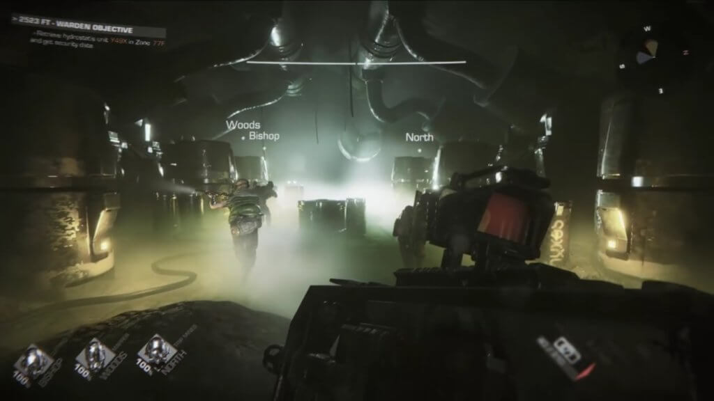 Mais si la direction artistique de ces environnements à l’air aussi alléchante qu’oppressante, c’est bien évidemment les ombres qui nous intéressent ; des monstres peu désireux de partager leur habitat rôdent, et il vous faudra compter sur vos coéquipiers pour vous en sortir. Le trailer résume assez bien l’ambiance générale avec cette phrase : « Those fuckers might be everywhere« .
