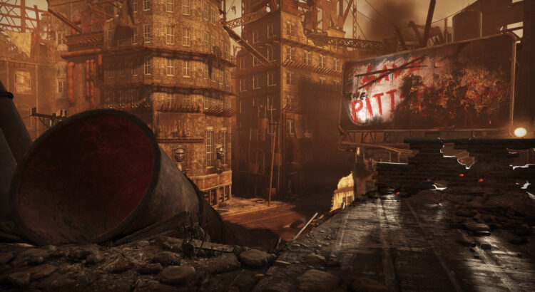 - Nouveau lieu – Redécouvrez le Pittsburgh d’après-guerre pour la première fois depuis Fallout 3. Ce qui était autrefois une fière cité et un centre industriel majeur a été ravagé par le conflit nucléaire. Des niveaux de radiations très élevés ont fait muter ses citoyens, plongeant la ville dans des luttes intestines entre plusieurs factions rivales.