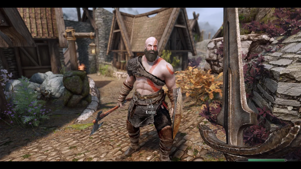 Vous pourrez recruter Kratos à Whiterun, et s’il ne se séparera de son armure pour rien au monde, vous pourrez tout de même avoir une copie de son bouclier et de sa hache qu’il garde de côté. Pour le moment, il n’a pas de voix personnalisée, mais BruvRamm a annoncé être à la recherche d’un doubleur – après tout, cette grosse voix bourrue ajoutera encore plus d’immersion !