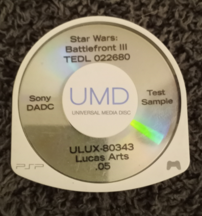 Mais l’utilisatrice de Reddit MissFreepit nous en a dévoilé un aperçu aujourd’hui, avec une histoire originale : un membre de la famille de son fiancé travaillait à l’époque pour un client de Lucasarts, et avait l’opportunité de tester de nombreux jeux en développement. Lorsque Battlefront III a finalement été annulé, toutes les copies et les éléments annexes ont été rappelés… sauf cette cartouche, manifestement, qui s’est retrouvée coincée dans une PSP.