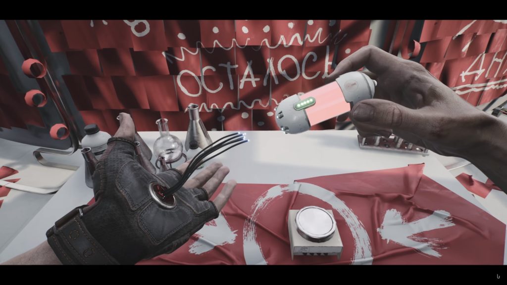 D’abord, notons le côté BioShock avec les pouvoirs télékinétiques, permettant ainsi de repousser des ennemis ou d’attirer des armes vers soi. La vidéo semble suggérer un genre d’amélioration cybernétique, puisqu’il sera possible d’interagir avec des objets en utilisant des câbles qui sortent de la paume de la main ; le jeu à beau se passer en Russie, ça fera plaisir aux fans de hentai !