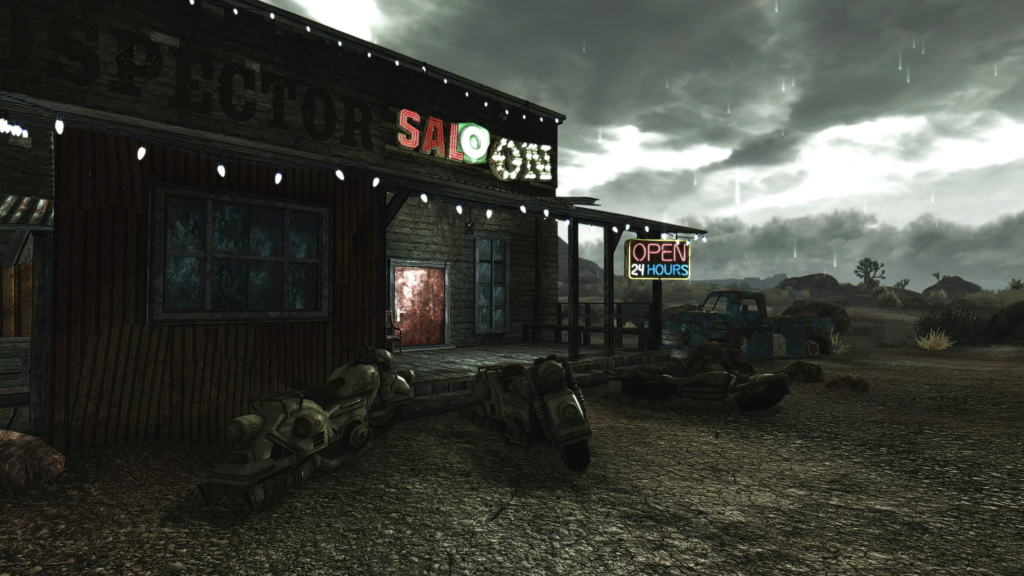 Cette bêta recèle aussi un PNJ inédit nommé Wasteland Adventurer, qui accueillait le joueur dès la sortie de Goodsprings pour lui donner des conseils, notamment une mise en garde explicite contre les Ecorcheurs, ennemis iconiques s’il en est. On note également des modifications vocales pour certains personnages comme Oliver Swanick, quelques environnements légèrement repensés, ainsi que des détails visuels surprenants — dont l’apparition de virevoltants radioactifs d’un vert éclatant traversant le désert.