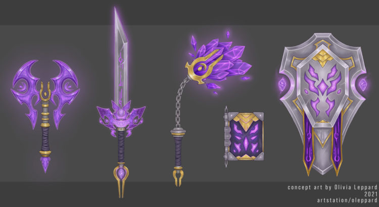 La dessinatrice Olivia Leppard a publié sur sa page ArtStation des concept arts d’armes pour les Elfes de la Nuit, les Elfes de Sang et les Draeneï. Si les premiers ont eu droit à de jolies customisations ces dernières années, il est vrai que les habitants de l’Exodar comme ceux de Lune-d’Argent n’ont pas vraiment été gâtés.
