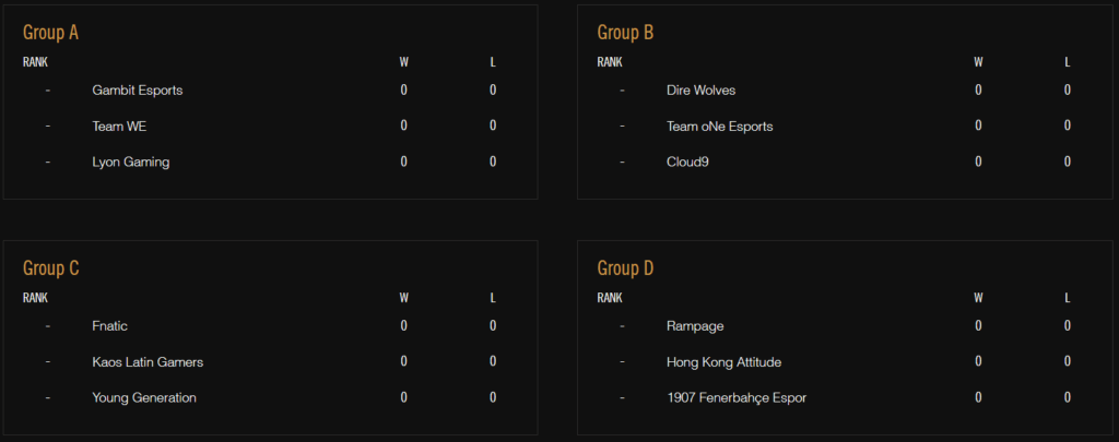 Pigloom : Dans le groupe A, on peut s’attendre à un gros combat entre Gambit et WE. Pour les autres, je vois C9 vainqueurs du groupe B, FNC du groupe C et FB du D.